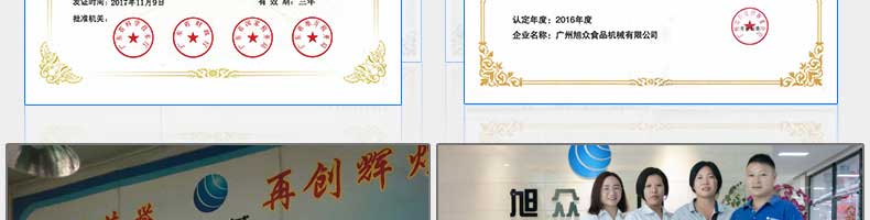 廣州旭眾食品機(jī)械有限公司是一家集科研開發(fā),生產(chǎn)設(shè)計(jì),營(yíng)銷服務(wù)為一體的現(xiàn)代化生產(chǎn)企業(yè)?,F(xiàn)代化生產(chǎn)車間,精湛制造技術(shù),所產(chǎn)機(jī)械歷經(jīng)市場(chǎng)重重考驗(yàn),不斷贏得海內(nèi)外客戶的贊譽(yù)。