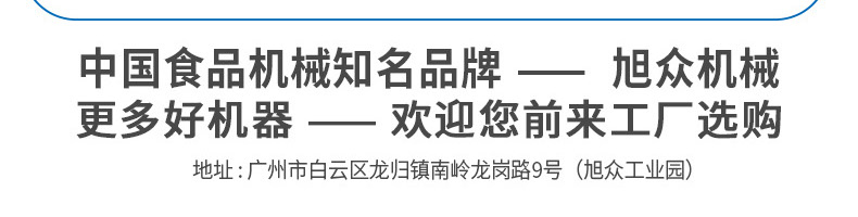 廣州旭眾食品機(jī)械有限公司是一家集科研開發(fā),生產(chǎn)設(shè)計(jì),營銷服務(wù)為一體的現(xiàn)代化生產(chǎn)企業(yè)?,F(xiàn)代化生產(chǎn)車間,精湛制造技術(shù),所產(chǎn)機(jī)械歷經(jīng)市場重重考驗(yàn),不斷贏得海內(nèi)外客戶的贊譽(yù)。
