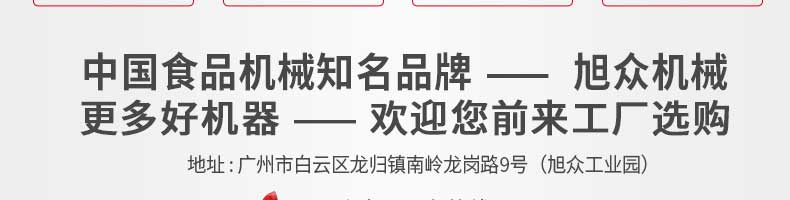 廣州旭眾食品機械有限公司是一家集科研開發(fā),生產(chǎn)設(shè)計,營銷服務(wù)為一體的現(xiàn)代化生產(chǎn)企業(yè)?,F(xiàn)代化生產(chǎn)車間,精湛制造技術(shù),所產(chǎn)機械歷經(jīng)市場重重考驗,不斷贏得海內(nèi)外客戶的贊譽。