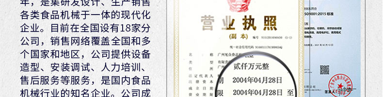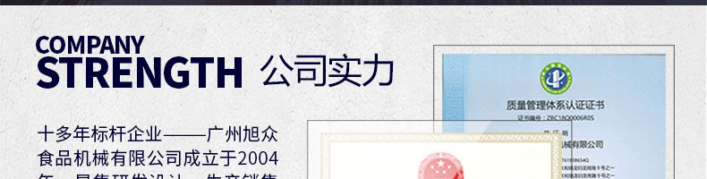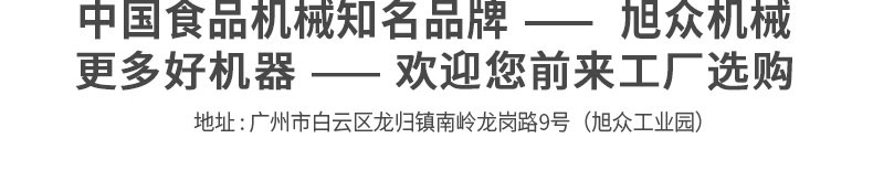 廣州旭眾食品機(jī)械有限公司是一家集科研開發(fā),生產(chǎn)設(shè)計(jì),營銷服務(wù)為一體的現(xiàn)代化生產(chǎn)企業(yè)。現(xiàn)代化生產(chǎn)車間,精湛制造技術(shù),所產(chǎn)機(jī)械歷經(jīng)市場(chǎng)重重考驗(yàn),不斷贏得海內(nèi)外客戶的贊譽(yù)。