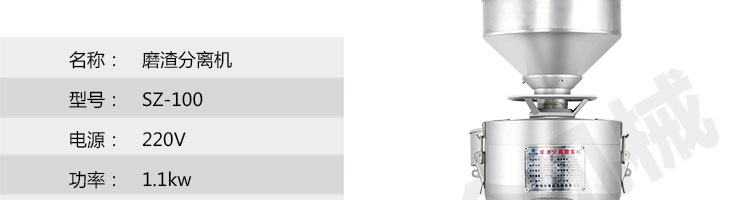 SZ-100-磨渣分離機(jī)系列,適用于把豆制品磨碎分離漿和渣;適用于豆制品廠、飲食服務(wù)業(yè)、食堂、飯店及個體商戶使用。