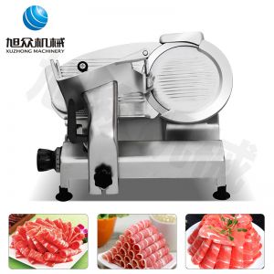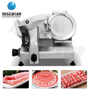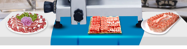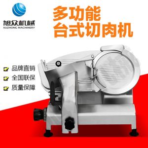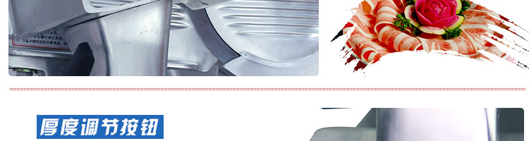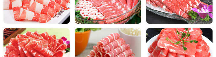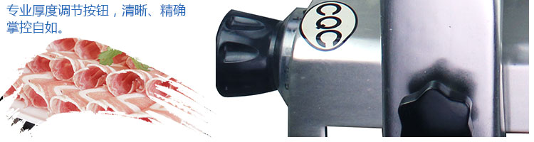 臺式全自動切片機,適合切無骨肉類和其他類似榨菜帶有彈性的食物,把原材料肉切成肉片,并可自動成卷狀??汕信H馄⒀蛉馄?/p>