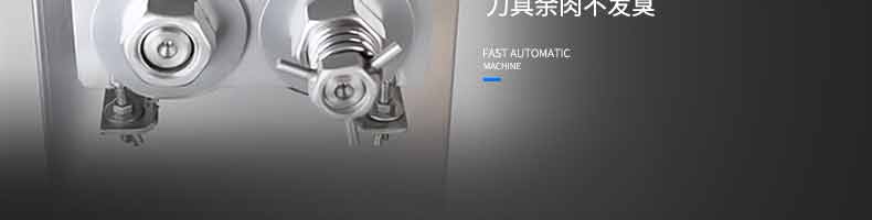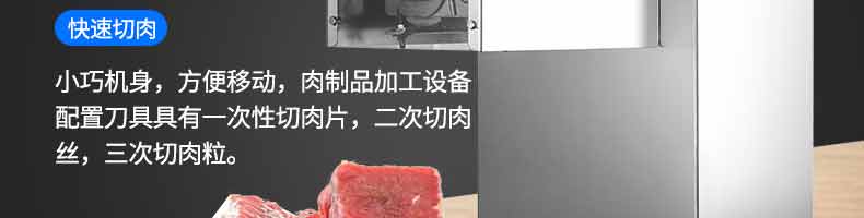XZ-QX320-切肉機(jī),小型切肉機(jī)是一款主要對(duì)肉類進(jìn)行加工的設(shè)備,配置單層刀具一次性切肉片,二次切肉絲,再切成料。刀具采取外置懸臂式設(shè)計(jì),拆洗方便,衛(wèi)生更有保障;配置多種刀具,可加工不同厚度的肉片,實(shí)現(xiàn)一機(jī)多用;機(jī)內(nèi)裝有安全保護(hù)開頭,刀具外露時(shí),機(jī)器自鎖不能啟動(dòng),以保安全;卸下的刀具,不用清洗直接放置在6攝氏度以下的冰箱里,刀具余肉不發(fā)臭。刀片用特殊不銹鋼材料制造,經(jīng)久耐用。