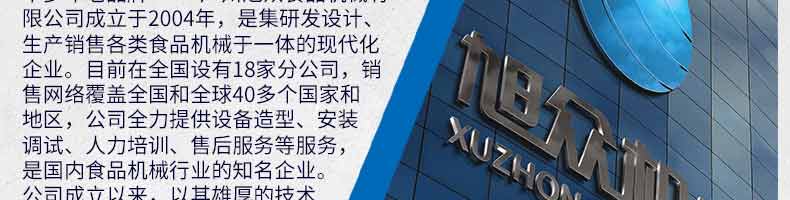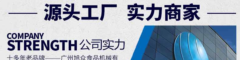 廣州旭眾食品機(jī)械有限公司是一家集科研開發(fā),生產(chǎn)設(shè)計(jì),營(yíng)銷服務(wù)為一體的現(xiàn)代化生產(chǎn)企業(yè)?,F(xiàn)代化生產(chǎn)車間,精湛制造技術(shù),所產(chǎn)機(jī)械歷經(jīng)市場(chǎng)重重考驗(yàn),不斷贏得海內(nèi)外客戶的贊譽(yù)。