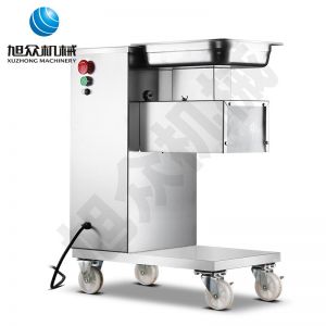XZ-QE切肉機(jī),是一款可方便移動(dòng)的肉類加工設(shè)備,配置單層刀具一次性切肉片,二次切肉絲,再切成粒。底座設(shè)置有滑輪,移動(dòng)靈活,輕松便捷;刀具采取外置懸臂式設(shè)計(jì),拆洗方便,衛(wèi)生更有保障;配置多種刀具,可加工不同厚度的肉片,實(shí)現(xiàn)一機(jī)多用;機(jī)內(nèi)裝有安全保護(hù)開頭,刀具外露時(shí),機(jī)器自鎖不能啟動(dòng),以保安全;刀片用特殊不銹鋼材料制造,經(jīng)久耐用;卸下的刀具,不用清洗直接放置在6攝氏度以下的冰箱里,刀具余肉不發(fā)臭。
