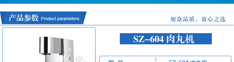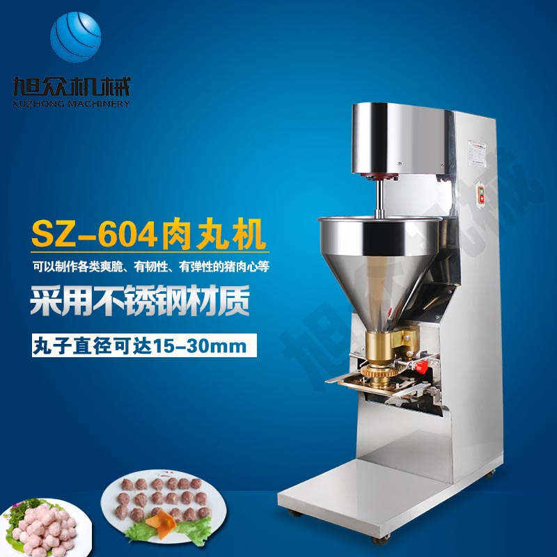SZ-604肉丸成型機(jī),肉丸成型機(jī)采用不銹鋼材質(zhì),丸子直徑可達(dá)15-35mm,可以制作各類爽脆,有韌性、有彈性的豬肉丸、魚(yú)丸、牛肉丸、貢丸、雞肉丸等