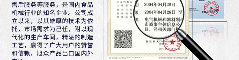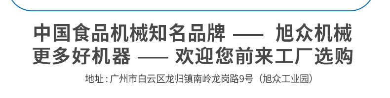 廣州旭眾食品機(jī)械有限公司是一家集科研開發(fā),生產(chǎn)設(shè)計(jì),營銷服務(wù)為一體的現(xiàn)代化生產(chǎn)企業(yè)?,F(xiàn)代化生產(chǎn)車間,精湛制造技術(shù),所產(chǎn)機(jī)械歷經(jīng)市場重重考驗(yàn),不斷贏得海內(nèi)外客戶的贊譽(yù)。