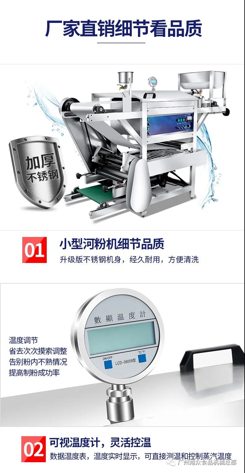 好商機(jī)少不了機(jī)械的幫助,旭眾新升級的一款新型小型河粉機(jī),就能幫助您不少的忙,省時(shí)省力,省人工,下面就是這款的介紹,往下看看吧,