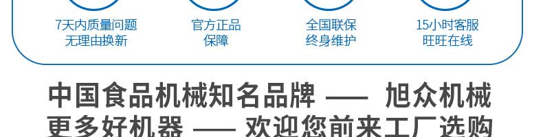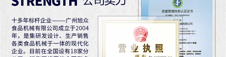 廣州旭眾食品機械有限公司是一家集科研開發(fā),生產(chǎn)設(shè)計,營銷服務(wù)為一體的現(xiàn)代化生產(chǎn)企業(yè)?,F(xiàn)代化生產(chǎn)車間,精湛制造技術(shù),所產(chǎn)機械歷經(jīng)市場重重考驗,不斷贏得海內(nèi)外客戶的贊譽。