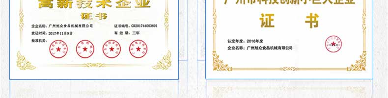 廣州旭眾食品機(jī)械有限公司是一家集科研開發(fā),生產(chǎn)設(shè)計(jì),營(yíng)銷服務(wù)為一體的現(xiàn)代化生產(chǎn)企業(yè)?,F(xiàn)代化生產(chǎn)車間,精湛制造技術(shù),所產(chǎn)機(jī)械歷經(jīng)市場(chǎng)重重考驗(yàn),不斷贏得海內(nèi)外客戶的贊譽(yù)。